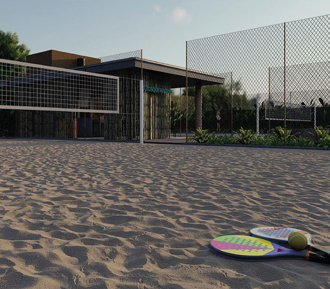 piscina com praia • salão gourmet • salão de festas • cinema • brinquedoteca • coworking • mini market • spa • sauna • academia • quadras esportivas • espaço pet • trilhas